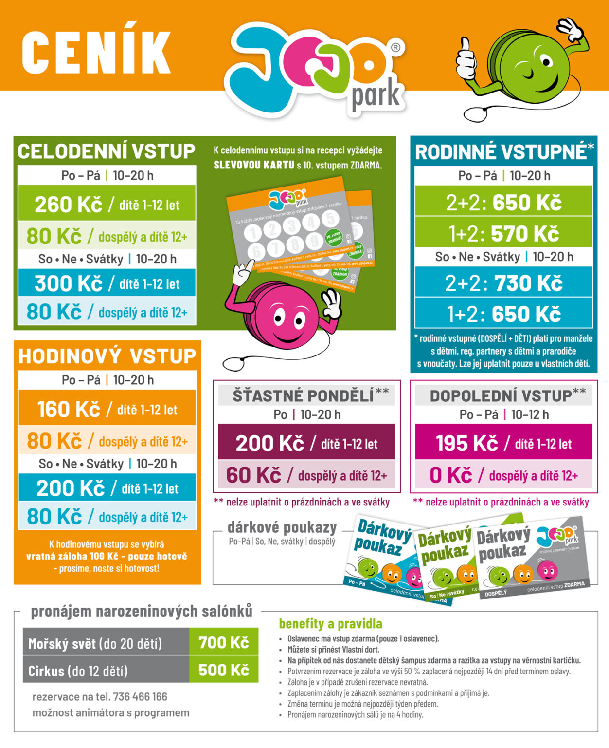 Jojopark je rodinné zábavní centrum s příjemnou atmosférou, kde se budete cítit jako doma, protože i u nás se chodí v ponožkách . Centrum je na ploše 1000 m² a nabízíme zábavu, jak pro malé, tak i větší děti a určitě se u nás zabaví i dospělí. V našem parku najdete herničky pro menší děti se suchým bazénkem a domečky, nebo s didaktickými hračkami, které podpoří smyslové vnímání, fantazií a motoriku vašich dětí; odrážedla, ninja zóna, interaktivní lezecká stěma, dvoupatrový prolézací labyrint, air hockey, minigolf, ping pong a stolní fotbal. Rodiče i mimo zábavu mohou relaxovat na kavárně u skvělé kávy a něčeho dobrého na zub.